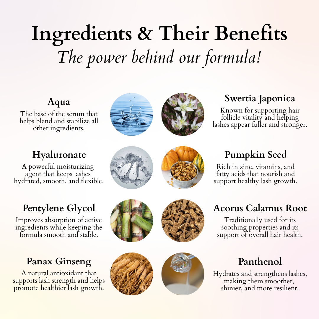 LBMLBMCosmetics uses high-quality, carefully selected ingredients that nourish, strengthen, and support natural lash growth. Hydrating agents like Hyaluronate and Panthenol keep lashes soft, while botanical extracts such as Swertia Japonica, Pumpkin Seed, and Ginseng promote fuller, healthier-looking lashes — all in a safe and effective formula.